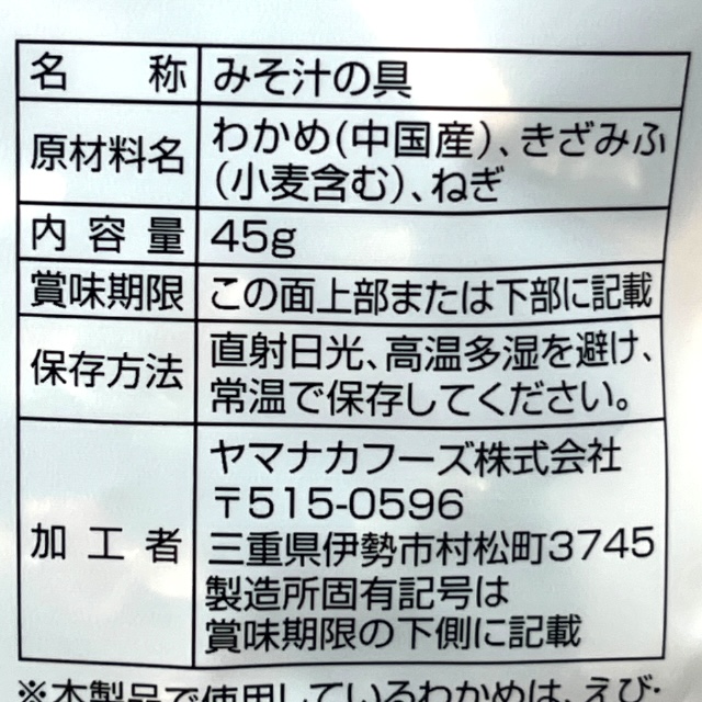 • みそ汁の具