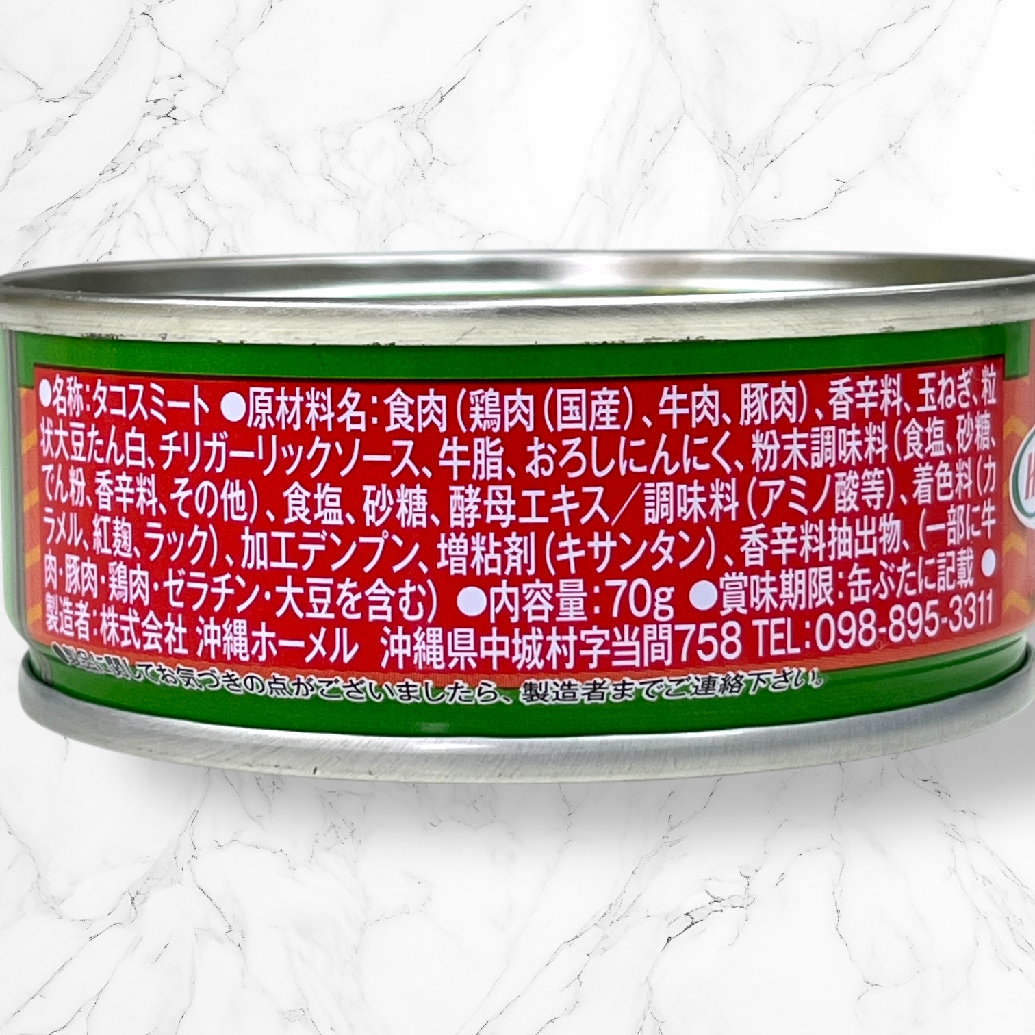 タコスミートを独自ブレンドのスパイスで味付けし缶詰にしました。1缶あたり70gで熱々のご飯にかけるだけで1人前のタコライスが出来上がります。タコライスの他にもタコスパスタやタコスサラダなどいろいろなレシピがお楽しみいただけます。
