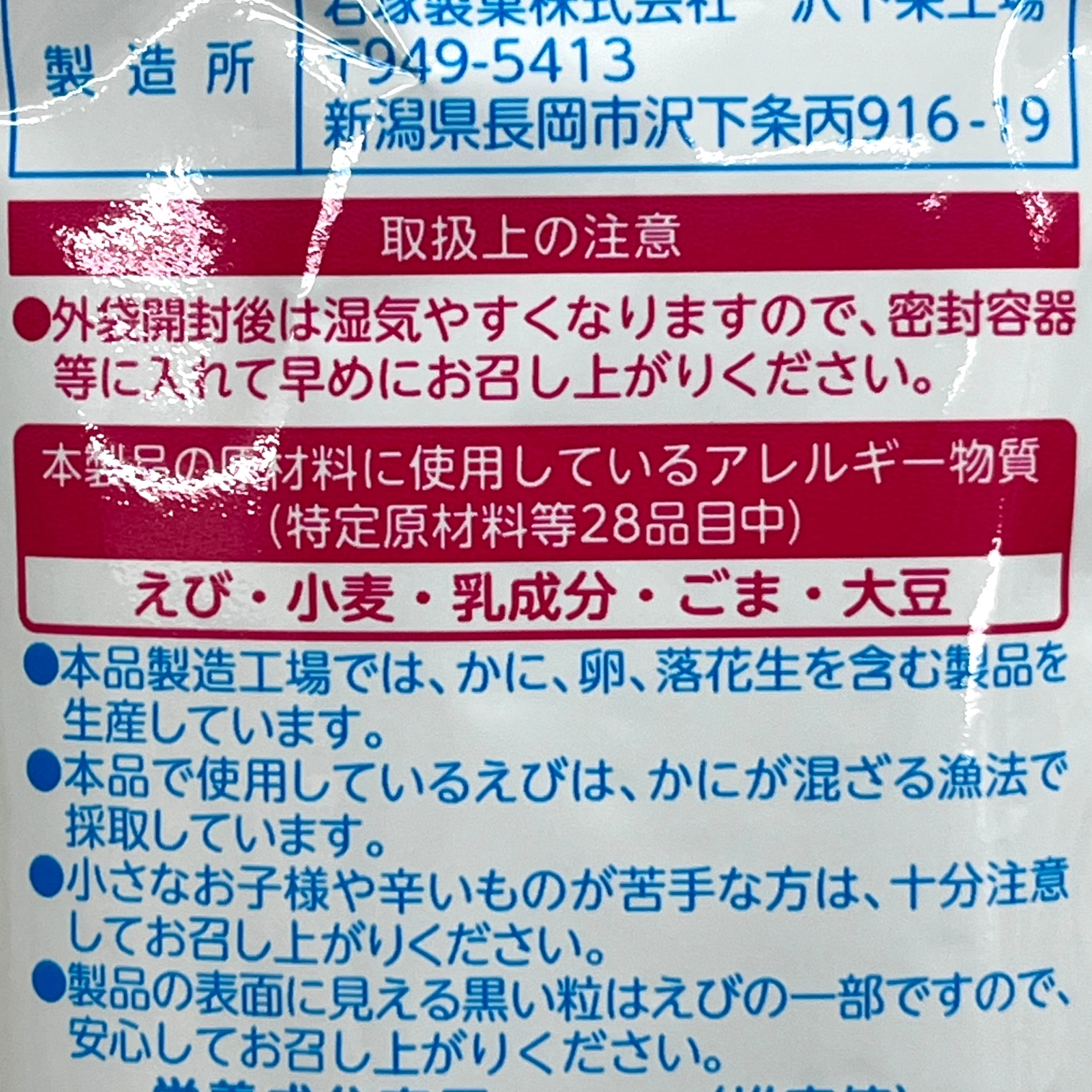 新潟県産米を100%使用しえびを練りこんだ生地に、辛さの中に旨みを感じる味付けで本格的な辣油の味わいを表現しました。