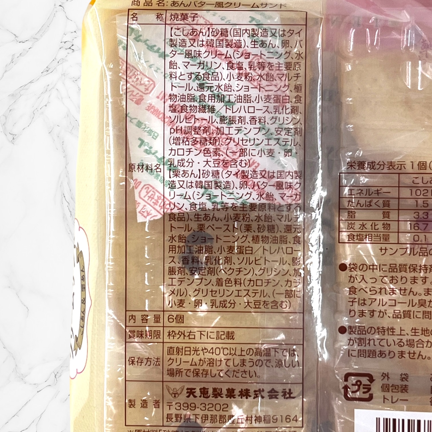 「塩味を効かせたバター風クリームと渋皮栗あん」「塩味を効かせたバター風クリームとこしあん」をふんわりスポンジ生地で包みました。