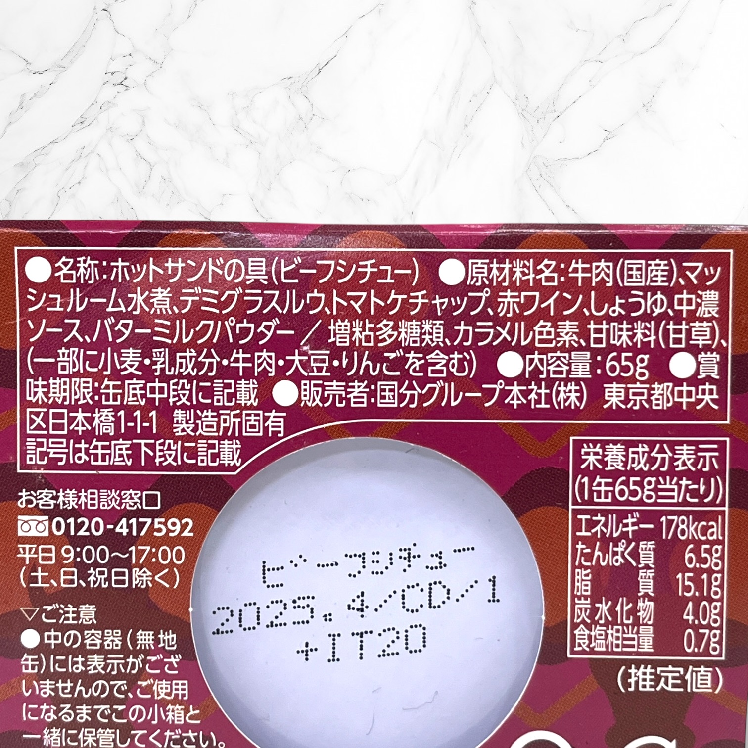 本格的なビーフシチュー味のホットサンドをお手軽にキャンプシーンで簡単に楽しめるホットサンドの具材缶です。