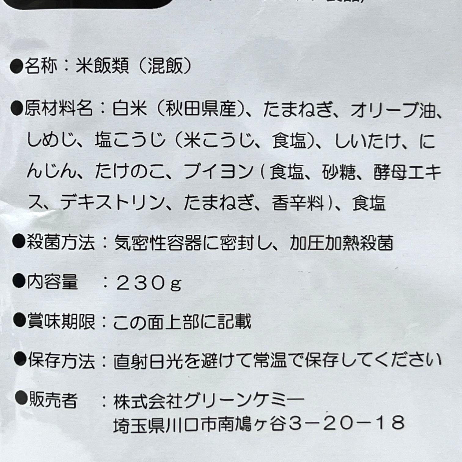 7年保存の水もお湯もいらない調理不要でそのまま食べれるレトルト食品です。国産米使用・アレルギー対応・ハラール認証食品です。素材のやさしい味わいを楽しめる五目ごはんです。