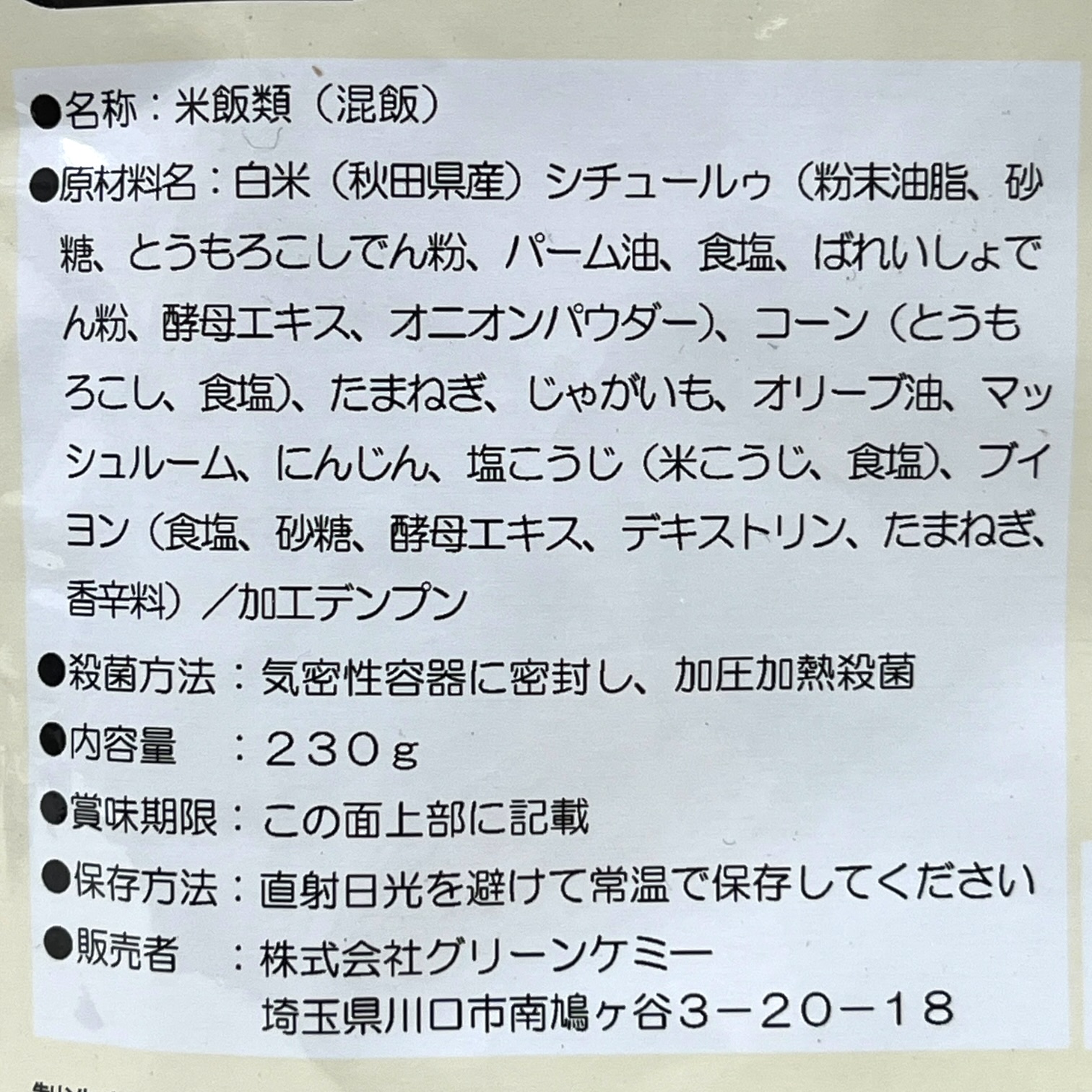 レトルトごはん コーンピラフ(期限前)