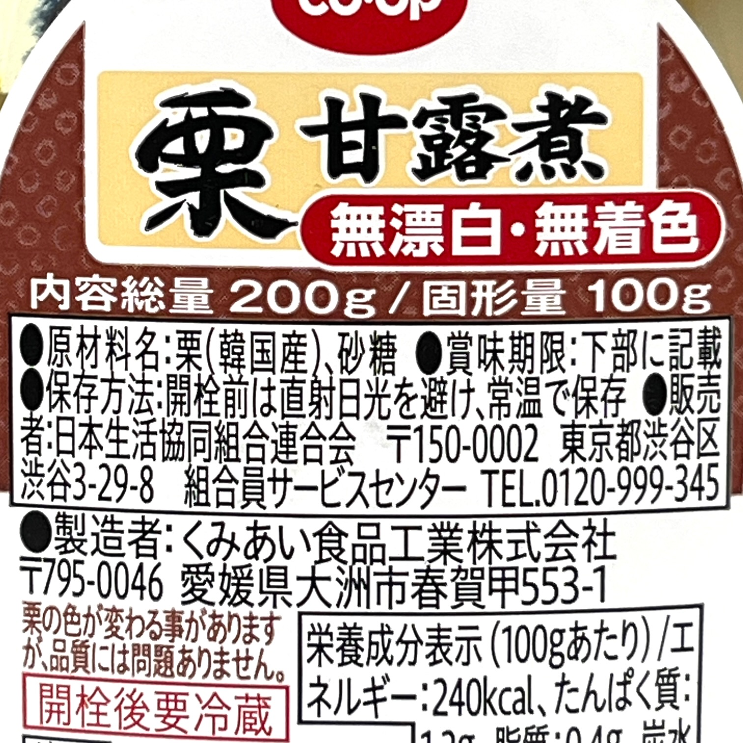 韓国産のむき栗を、グラニュー糖のみで、じっくりと煮込んだ甘露煮です。(無漂白・無着色)