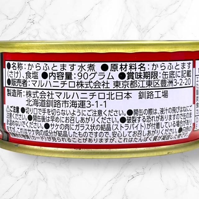 新鮮なからふとますをそのまま缶に詰めました。炒め物の具材やパスタなどにどうぞ。