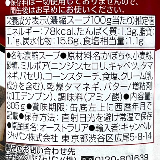 甘みのあるケント種を使用しなめらかに仕上げた缶入りタイプのパンプキンスープです。クリーミーでやさしいコクのある、バランスのとれた奥深い味わい。スプーン等で中身を鍋にあけ、空き缶1杯分(約300ml、お好みで調節)の牛乳を徐々に加えながら、中火でゆっくりかきまぜ温めてお召し上がり下さい。