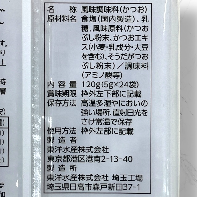 旨み、香り、コクを引き立たせる、良質な鰹節を使用しただしの素。使い切りの5g個包装24包入り。