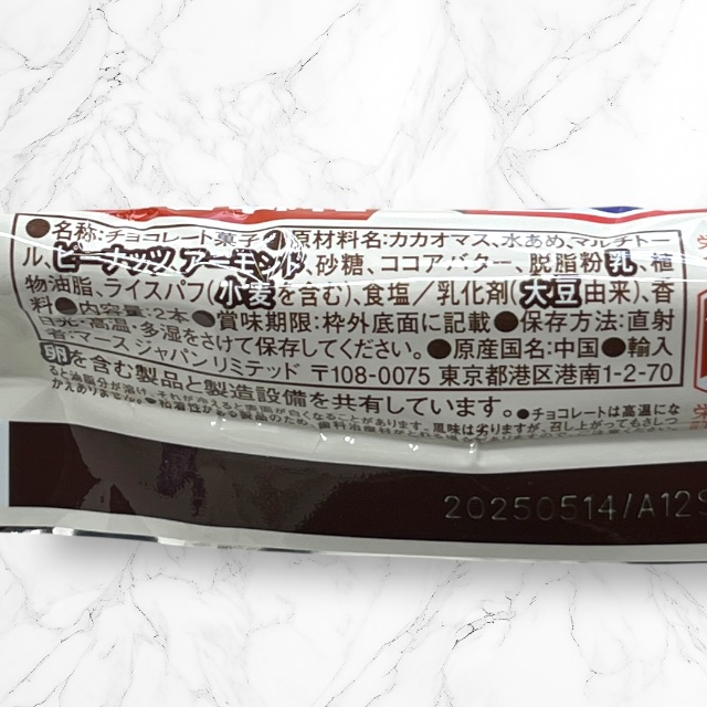 砂糖50%オフ、アーモンドを使用し食べ応え抜群、ビターチョコをコーティングしたスニッカーズです。